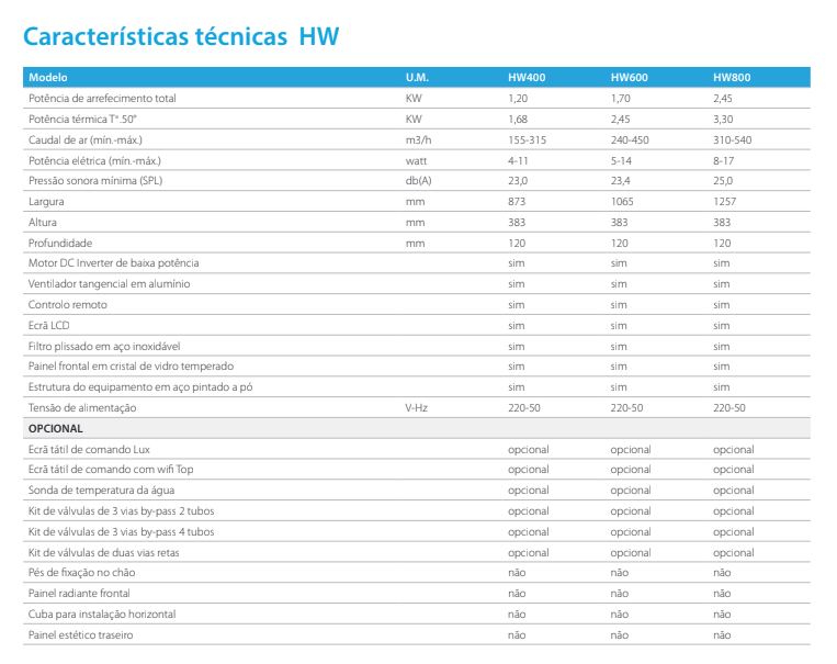Versátil e completo, o Reverso HW funciona como um sistema 4 em 1, proporcionando aquecimento no inverno, arrefecimento no verão, desumidificação eficaz e purificação contínua do ar. É a solução ideal para climatizar o seu espaço durante todo o ano, combinando tecnologia avançada, eficiência energética e design sofisticado num único produto. Não inclui válvula 3 de vias e controlador.